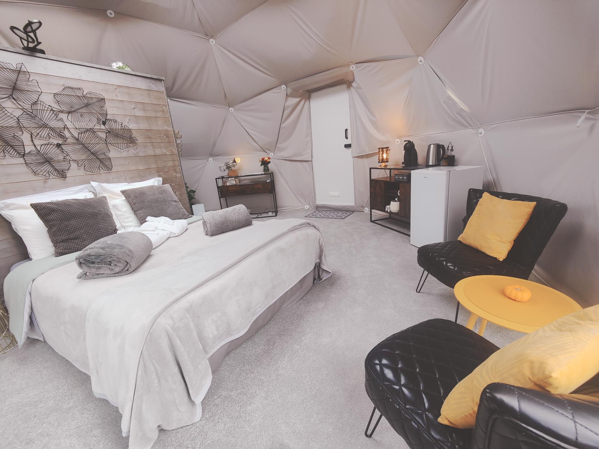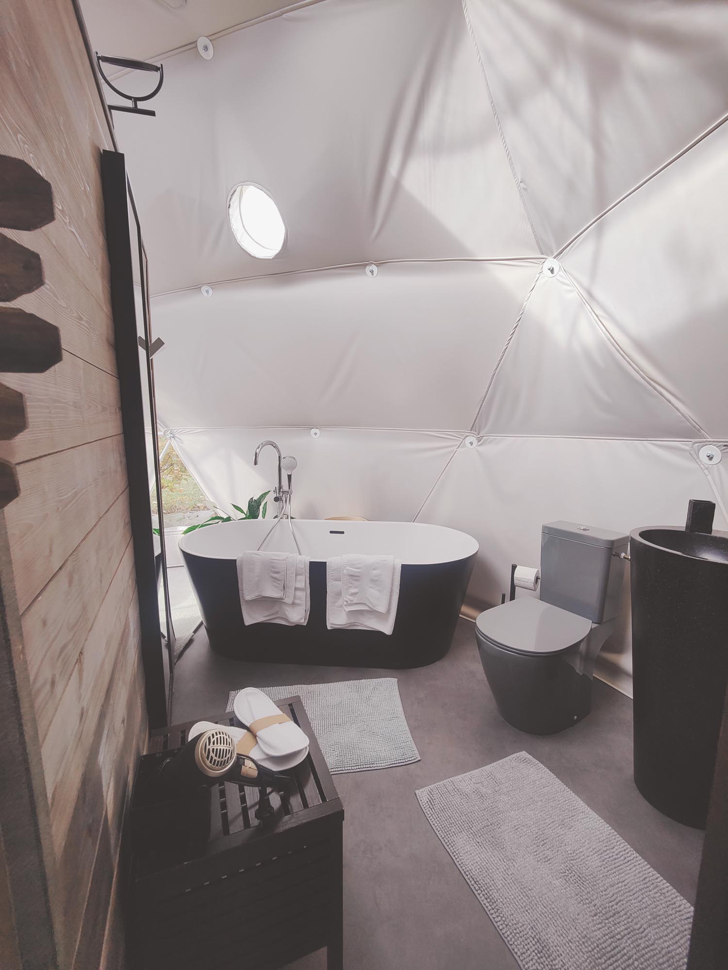 Notre dome de 30m2 vous permet de profiter d’un moment inoubliable en pleine nature avec tout le confort d’un hôtel haut de gamme. Pouvoir profiter d’une nuit à la belle étoile grâce à son ouverture transparente au plafond (qui peut aussi se fermer pour les plus sensibles à la luminosité), sa grande baie panoramique pour se sentir à l’extérieur tout en étant à l’intérieur